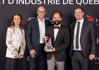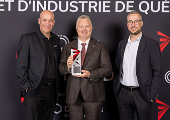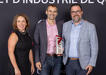 Nancy Boissonneault, cheffe – Développement des ventes clientèle d’affaires régionale, Hydro-Québec, Hugues Foltz, vice-président exécutif et associé, et Kevin Moore, cofondateur, président et chef de la direction, Vooban